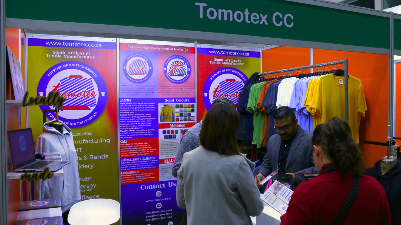 Tomo Tee by Tomotex made a statement at this year’s Allfashion Sourcing Cape Town, transforming their CTICC booth into a visual feast of bold branding, craftsmanship, and serious textile cred.